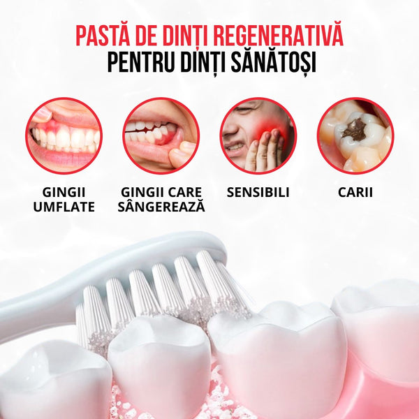 Descoperă puterea tehnologiei avansate de îngrijire orală într-o formulă unică. Pasta noastră de dinți regenerativă oferă cea mai completă soluție pentru un zâmbet strălucitor și sănătos. Spune adio produselor multiple și salută bunăstarea orală completă.