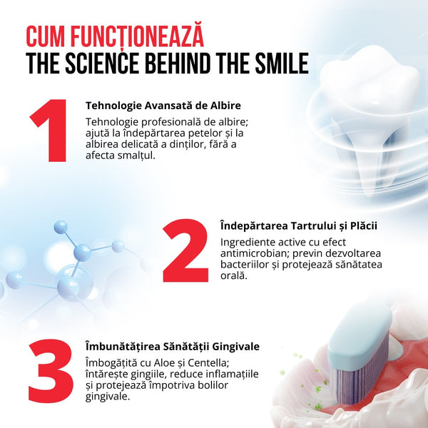 • Regenerare – Repară micro-deteriorările pentru dinți mai sănătoși și mai puternici.